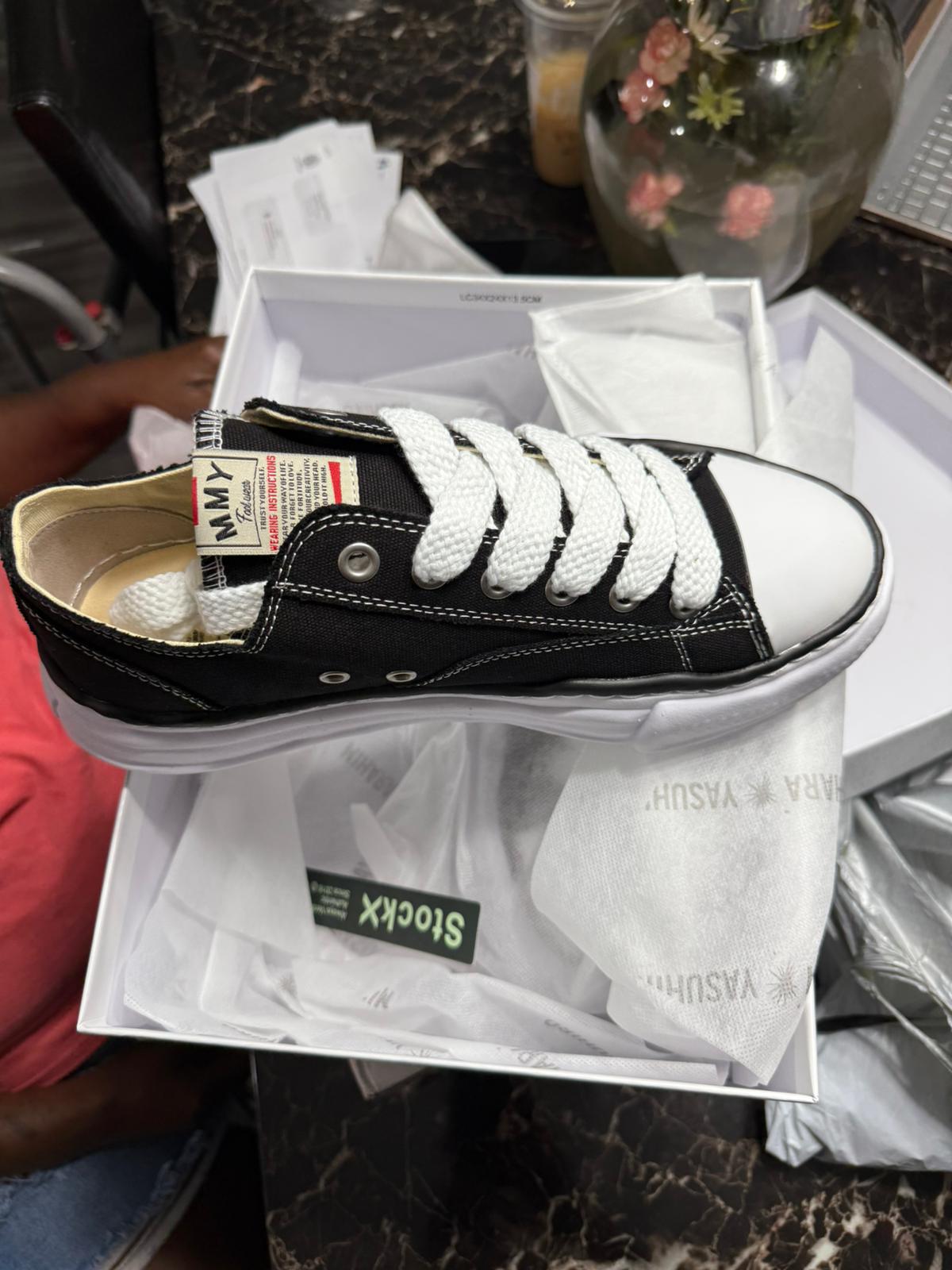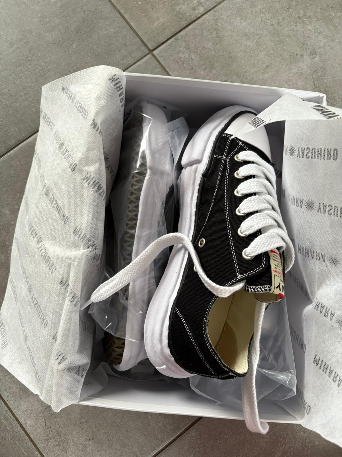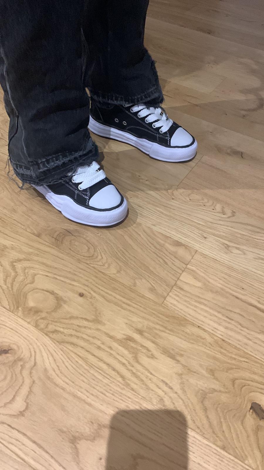The MAISON MIHARA YASUHIRO ( MMY) "PETERSON" OG Sole Canvas Low-top Sneaker in White/Black is a part of the brand’s signature line that blends avant-garde design with streetwear aesthetics. Maison Mihara Yasuhiro is known for its distinct, chunky soles and deconstructed style, and the "Peterson" OG Sole Canvas sneaker is no exception. This sneaker is designed for fashion enthusiasts who appreciate a mix of high-end fashion and streetwear, offering a statement piece that's both stylish and functional. It's perfect for those who love sneakers with artistic and unconventional design elements.